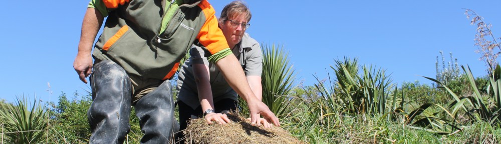 On Wednesday the 11th of September 2019, Helen Jonas and Hawaiki Walker from DOC went with Nic to the Whangawehi stream to carry out some white bait work. The spawning site was fenced off in 2014 but still remains marginal in terms of the quality of its habitat for white bait spawning. The hot spot is a short 100 m stretch of river where the fresh water mixes up with the salt water. White baits lay their eggs in the vegetation growing on the river bank during king tides. The eggs need to be exposed to the air to be able to mature.