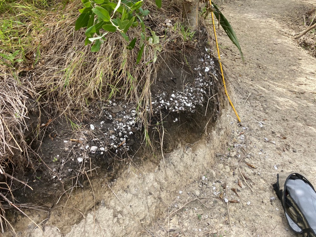 The midden is made out of small size cockles and Tuatara with some fish bones. The study will hopefully tell us a bit more about the diet of our ancestors. We will keep you posted.