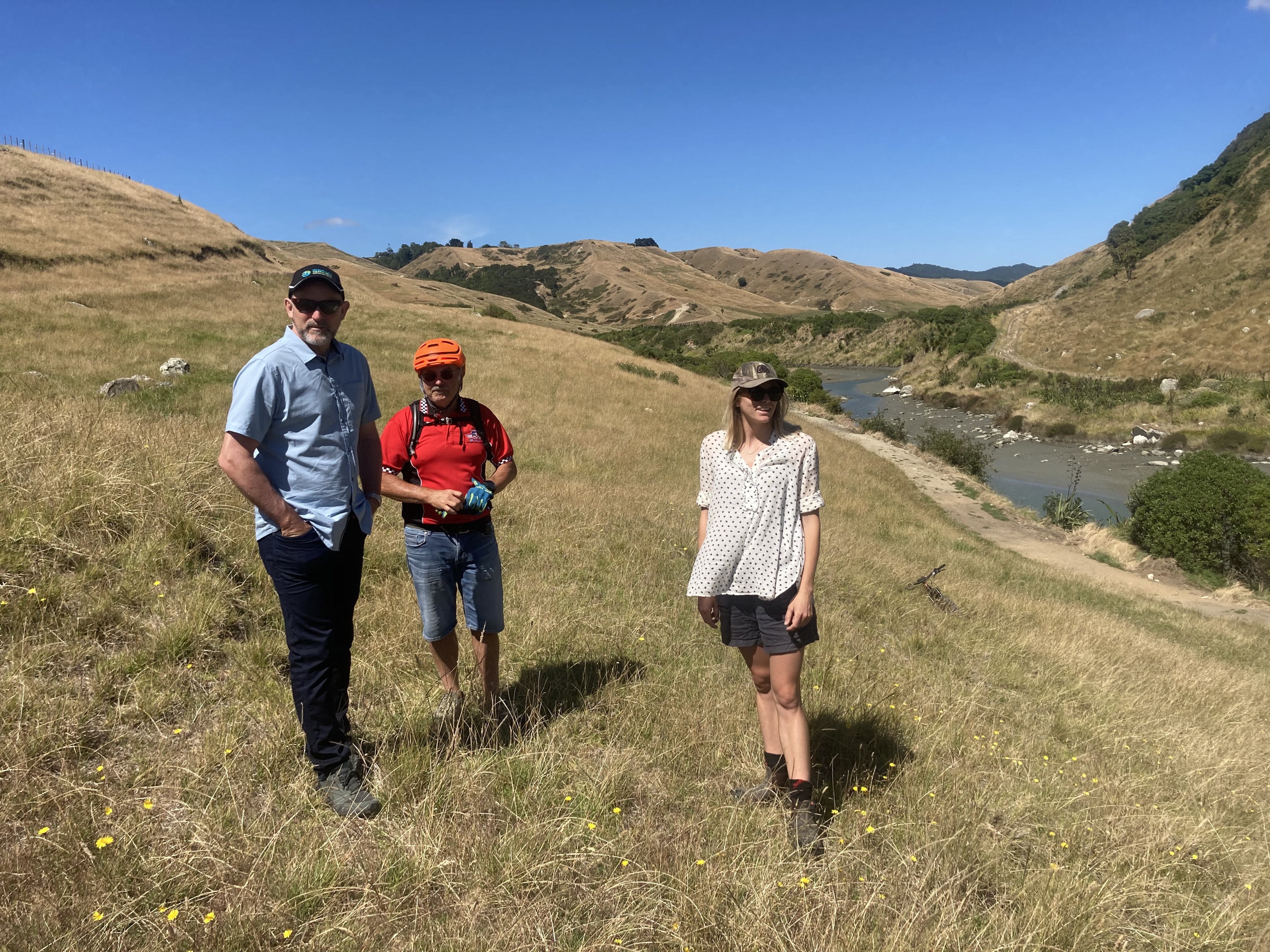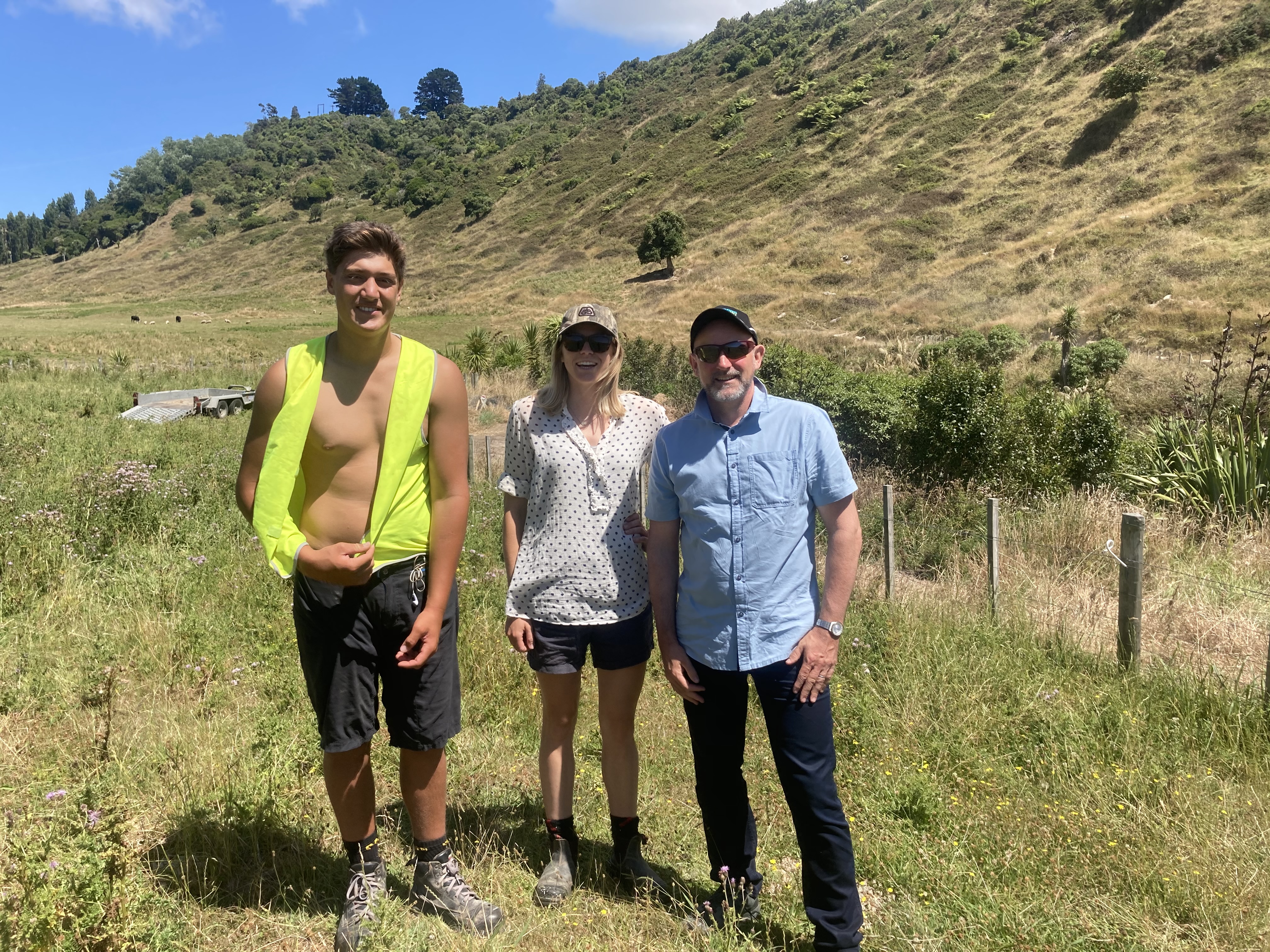 On Tuesday the 26 th of January, Cameron Osmond and Kate Jefferd from MBIE came to check up on the progress made along the whangawehi walkway. Southern Star trail as well as local fencers are doing a fantastic job despite the extreme heat. Malcolm Smith was also on site and shared his passion for the project with the group. A big thank you to Cameron and Kate for their support.