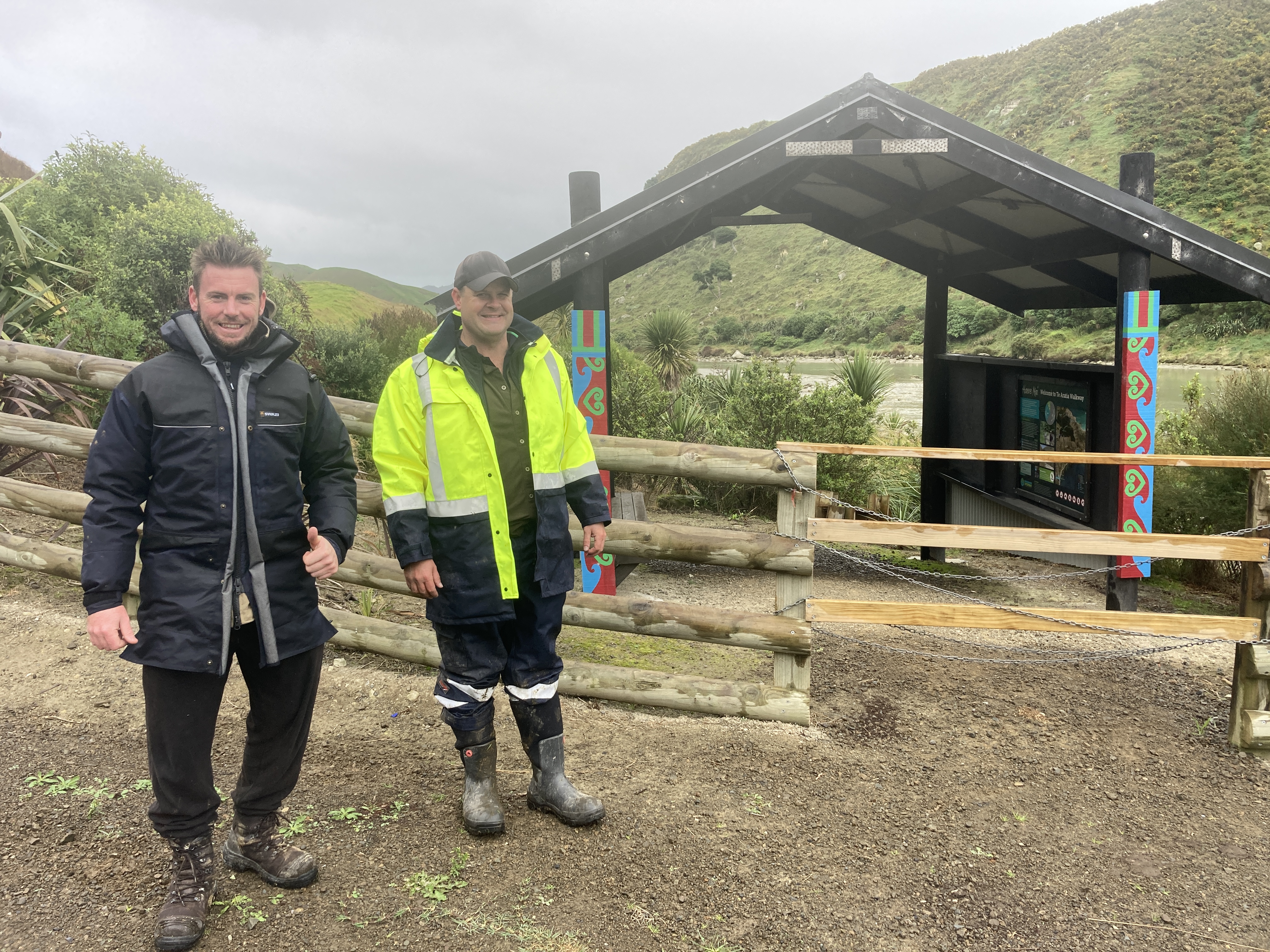 On the 26th of May 2022, Rod Dickson and Steeve Smith from the HBRC Open Space team came to Mahia to have a look at the Whangawehi project. A big thank you for their visit. Despite the terrible weather, they managed to have a good overview of the work completed so far and the challenges caused by the storms.