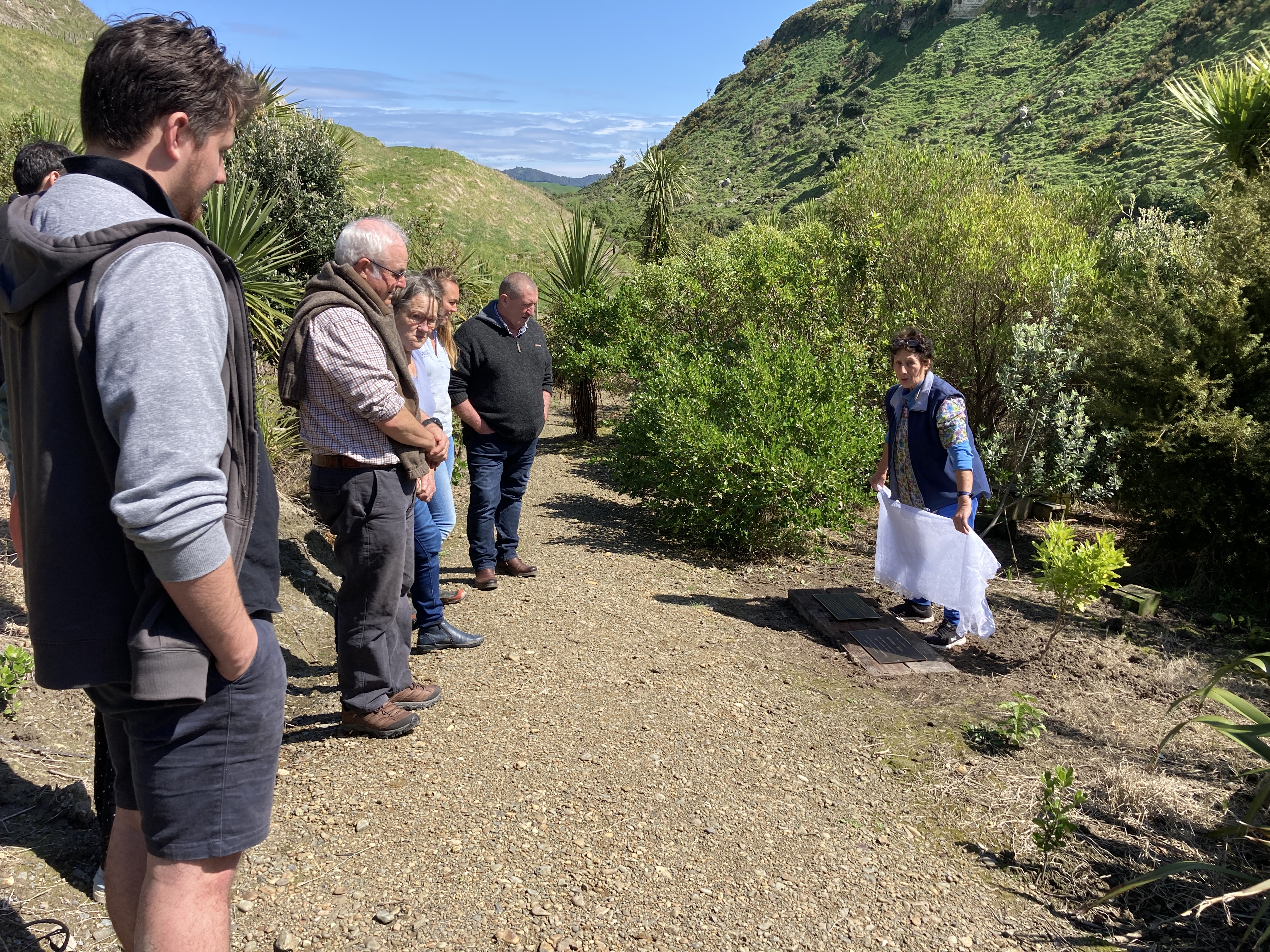 After the meeting, the group gathered at the entrance of the walkway to unveil two plaques.