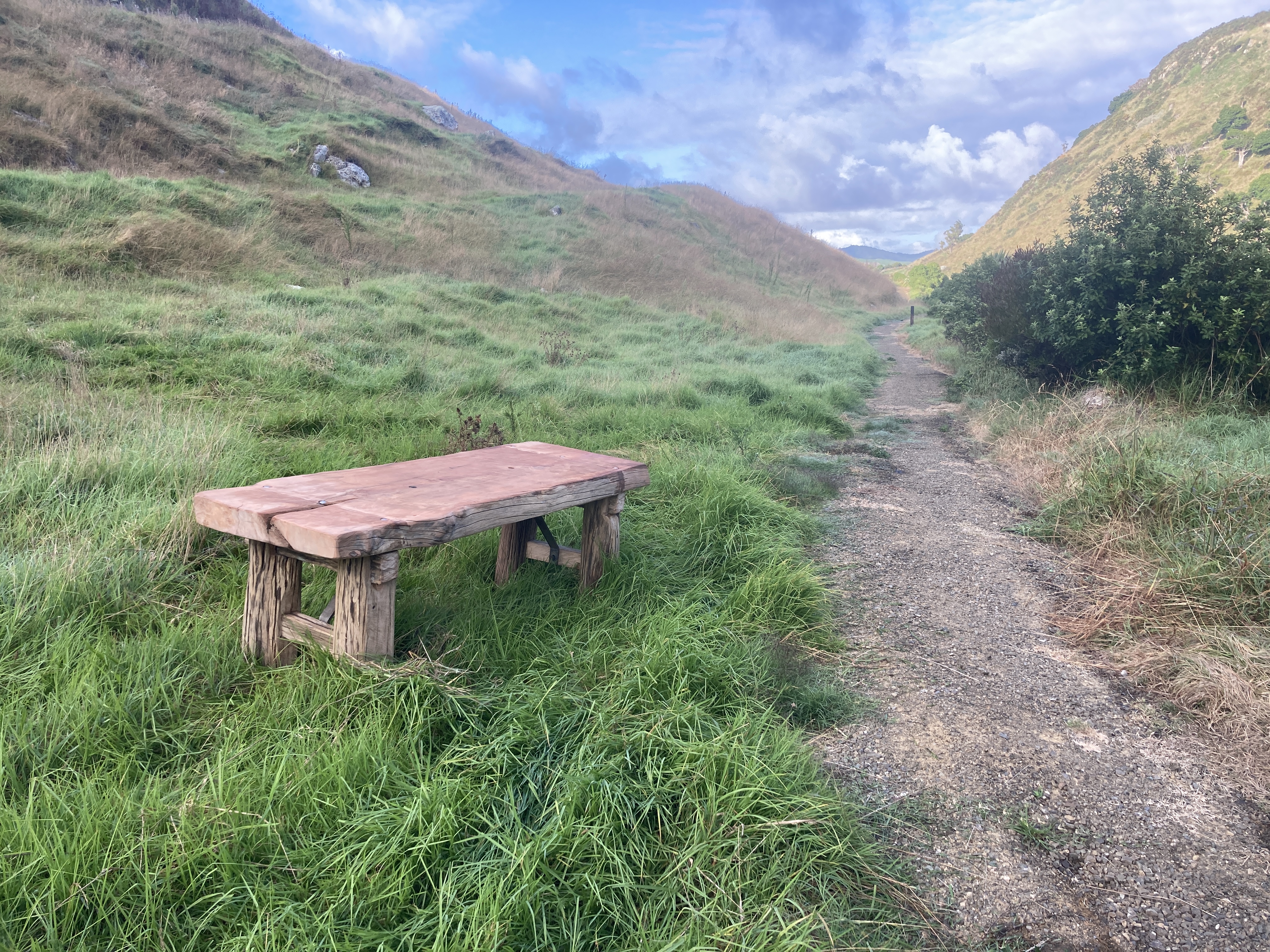 On the 1st of March 2021, Southern Star Trail started gravelling the Whangawehi walkway. First a special membrane is laid on the ground and the gravel spread over it. The gravel is then compacted and rolled. The finish product looks really nice. Southern Star Trail use a purpose made trailer towed behind a small tractor to ferry the gravel up and down the walkway. It is going to be a long process and we hope that the work will be finished before the end of April.